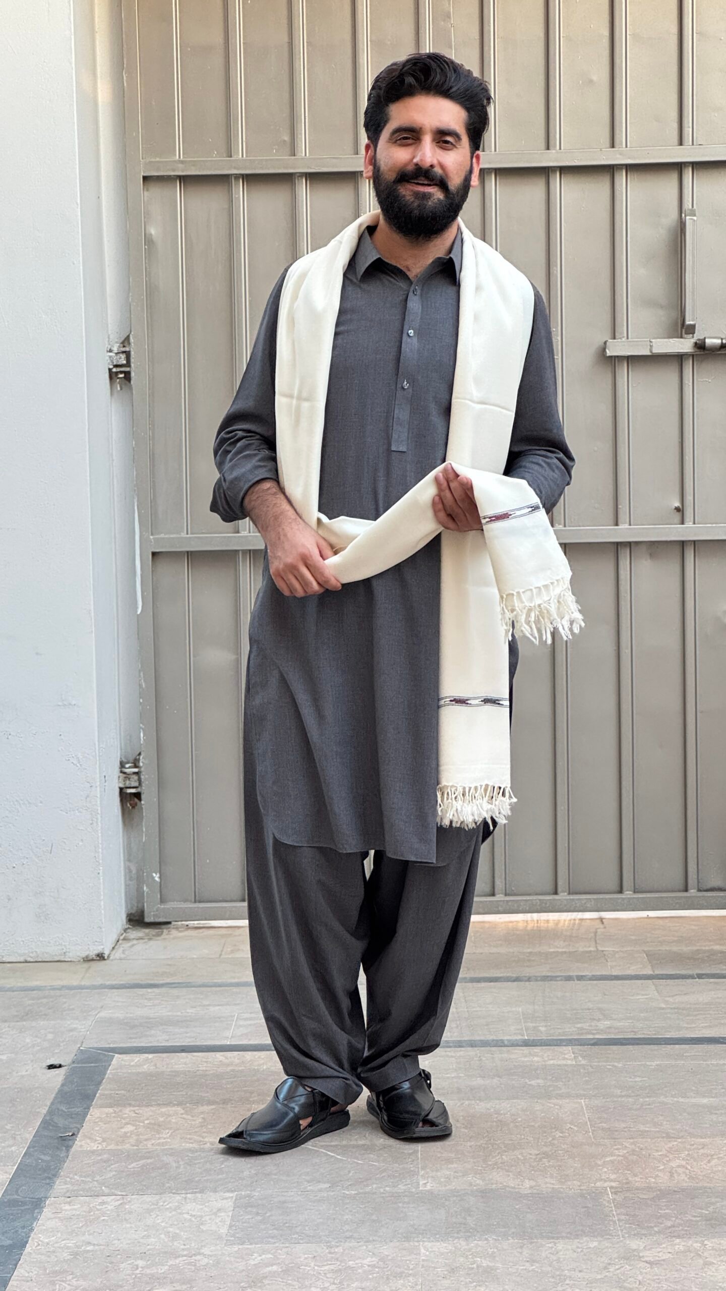- Product: White Wool Thread Mix Shawl.